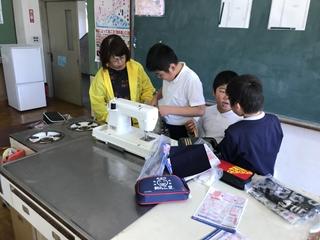 3月5日(火) 今日の5・6校時5年生が家庭科で、エプロンづくりをしました。地域の方がゲストティーチャーとして、9名おいで頂きました。大変ありがとうございました。