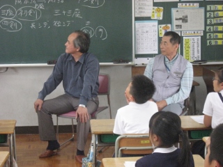 6月6日(火) 「玉名学探求」の時間に「わたしたちの玉名市、昔があって今がある」の学習をしました。教材に玉水校区に伝わる「立花神楽」を取り上げ、地域から4年生の宮崎知貴さんのおじい様と立花神楽代表の林田様をお呼びして学習に取り組みました。子ども達にも玉水校区の良さを知ってもらい地域に誇りを持ってほしいと思います。
