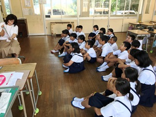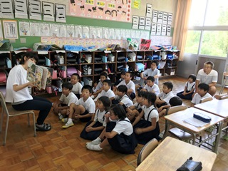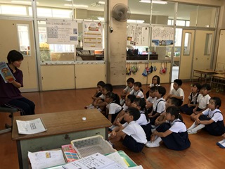7月12日(木) 今日は読み聞かせがありました。気温は朝から暑くなっていますが、エアコンの入った涼しい教室で、読み聞かせも快適です。