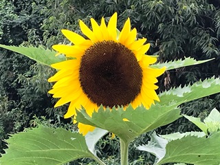 7月17日(火) 地域のひまわり一番大きくなっているひまわりの他、花が咲いたひまわりです。だんだん花が咲くのが増えてきているようです。