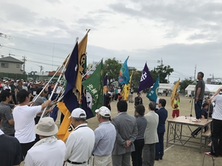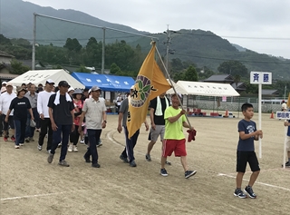 6月10日(日) 今日は3支館合同体育祭でした。玉水小学校の子供達も多くの競技二酸化して頑張っていました。写真は、プラカードや区の旗を持って行進している子供達と玉水の6つの区の玉入れの様子です。