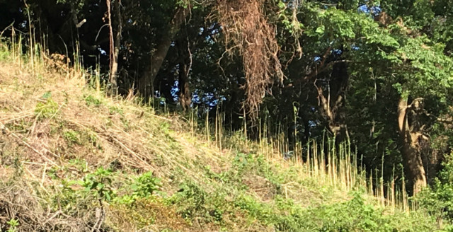 5月22日(火) 交通指導で移動しているときに気づきました。北側斜面は、昨年度末、生い茂っていた竹を切っていただきました。そのため、とても明るくなったのですが、新しい竹がどんどん生えてきています。ちょっと心配になりました。