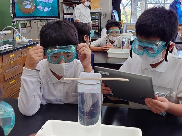 方法は、理科室から各教室に配信するリモート形式です。本来ならば、体育館で集まって対面で行う活動ですが、新型コロナウイルス感染予防のための措置です。