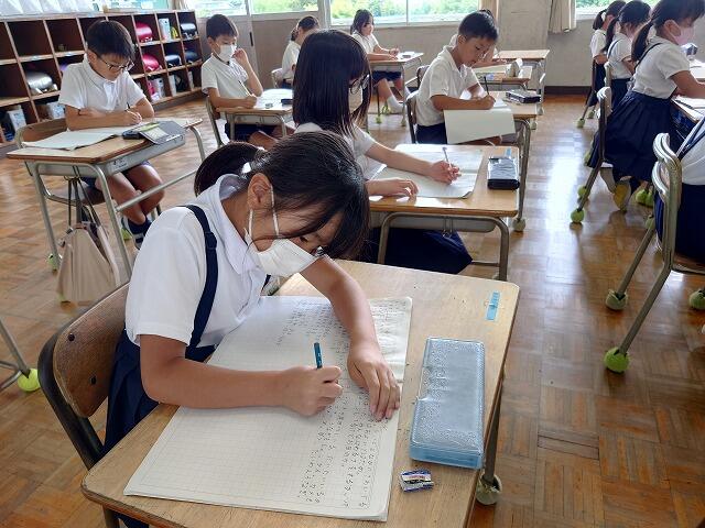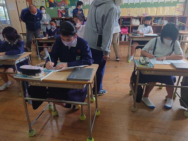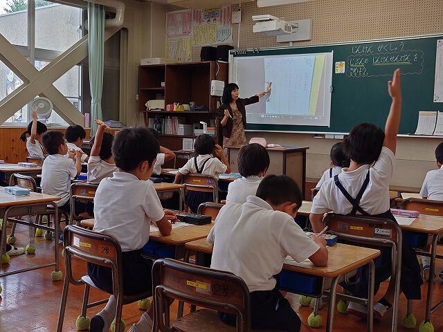 子供たちは熱心に学習に取り組んでいます。1年生では、ひらがなの練習を何度も丁寧に練習していました。3年生では、新出漢字の筆順や部首名を熱心に練習していました。4年生では、算数のグラフの学習をしていました。意欲的に気づきを発表していました。5年生では、体積の学習をしていました。1㎥は何リットルか?何立方センチメートルか?などを式をもとに考えていました。