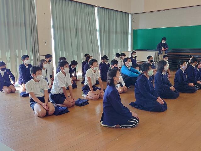 はじめに体育館に全児童が集合しての説明がありました。子供たちは、みんな私語をせずに話を聴くことができていました。