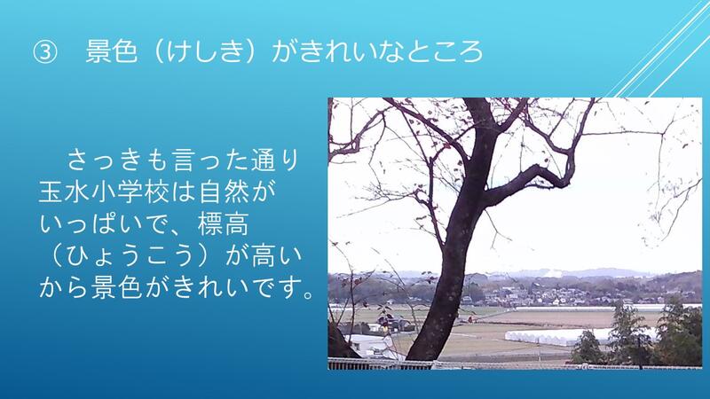 教室を回ると、どのクラスも環境委員会の発表が映し出されるスクリーンや大型テレビを食い入るように見ていました。