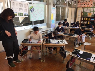 12月21日(木)に、3年生の書写指導にゲストティーチャーとして、立花の笠久美子先生をお招きしました。3年生から書写指導が始まるので、専門的な指導をということでお願いしました。2時間の指導で子どもたちもずいぶん上達しました。その後、子どもたちは、お礼の手紙を書きました。
