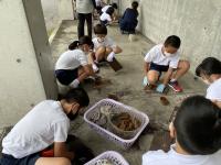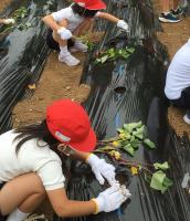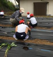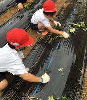 植替えるくらいに育ったので、今日6年生の子供達が鉢に苗を植え替えてくれました。