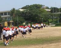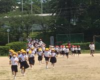 前回の避難訓練は教室から全員で一緒に運動場に避難する訓練でした。