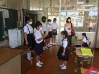 また、その後、5年生が学習した英語を使った会話をするために、校長室に