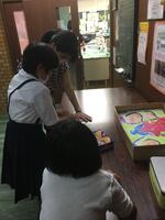 1年生は、学校の様々な場所に行って何があるかを記録する生活科の学習で