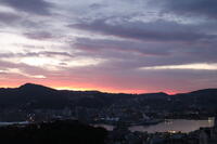 到着した頃は、まだ外も明るく、窓から長崎港の景色がよく見えています。