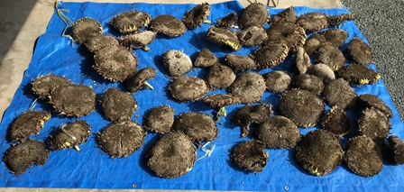 9月16日(日) 部田見のサブ会場の田んぼからひまわりの種を収穫しました。60個以上のひまわりがありました。経験して分かることですが、ひまわりの種の収穫は、思った以上に難しいです。カビが生えたり、腐ったりするのもあります。受粉ができていないと中に実が合いっていない物が沢山できます。これから何個の種が取れるのでしょう。