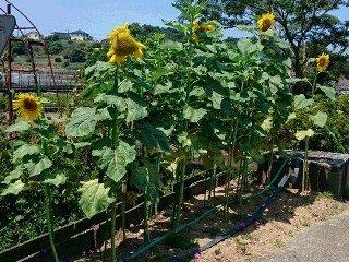 8月28日(火) 地域のひまわりです。ニュータウンの貯水池の周りに咲いています。ご協力ありがとうございました。