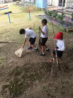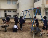 今日の昼休み時間に、中庭にある刈った草を集めていると、3年生の女の子が