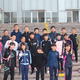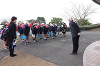 運動場で1年生を歓迎する会を行った後で、遠足に出発です。