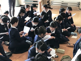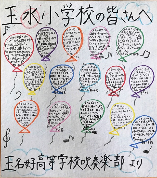 昨年の12月13日(水)に玉名女子高等学校の吹奏楽部をお招きして、音楽鑑賞会を実施しました。そのあと、子供達がお礼の手紙を書いて渡したことまでお伝えしていました。