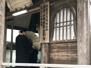 1月18日(木) 竹崎の観音祭りに行ってきました。本山(ほんざん)は、高野山「金剛峯寺」で真言宗だそうです。山鹿の「金剛乗寺」が,管理運営をされているお寺で、正式名称を「報恩院金剛寺」と言うそうです。毎月18日ににもお参りされる方がいらっしゃるそうですが、1月18日が初観音で一番大きな祭りと言われていました。大般若波羅蜜多経と言うそうですが、写真にあるように大きなじゃばらのようなものを用いてお祓いをされます。無病息災、健康祈願の御利益があるとのことでした。写真は、許可をいただいて掲載しています。