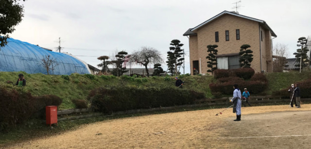 3月3日(土)8時より今年度最後のPTA役員さんによる美化作業がありました。1年間にわたり学校の環境美化のために6回もの作業をしていただきました。本当にありがとうございました。学校園の横にあったビニールハウスの中もきれいになりました。農具倉庫裏の竹や樹木も切っていただき、八社宮やニュータウンも見えるようになりました。