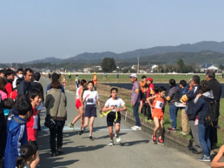 1月21日(日) 2時より 天水町の子供会駅伝大会がありました。玉水小校区の子供会からも7チームが参加していました。応援の保護者も大勢いらっしゃって、熱心な声援が送られていました。