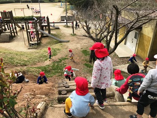3月12日(月)今日の午前中に、かわいい訪問者がありました。玉水保育園の園児達です。しばらく遊具で楽しそうに遊んでいました。あまりにかわいかったので、ご紹介します。