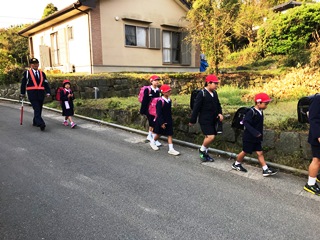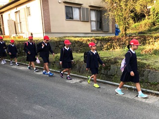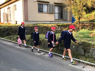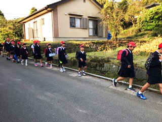 4月10日(火)今日は入学式でした。朝の南坂の登校の様子です。一年生がいないと人数も少なく少し寂しい感じがしました。明日からは、一年生も登校します。