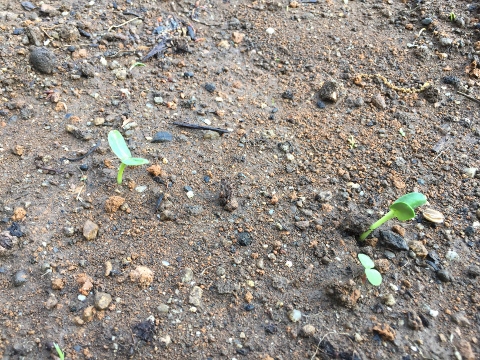 5月1日(月)に有機肥料を穴にいれ、よく混ぜて土をかぶせた後に種を植えました。