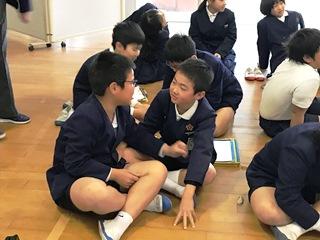 1月31日(木) 2校時ゲストティーチャーに三津家SCと橋本教育相談員をお招きして、すこやか教室の1,2年生の部を行いました。11月の人権旬間から「人権集会」「心のアンケート」その後の取組、そして、すこやか教室と続く、心の勉強の中心となるものです。内容は、「ふわふわことばちくちくことば」です。付箋に今まで言われたことのある「ふわふわ言葉」と「ちくちく言葉」を書いてホワイトボードに貼りました。そしてそれぞれにどんな力があるか考えました。子供達の付箋を見ると、軽い気持ちでいやだよと伝えているのでしょうが、結構残酷な言葉を使っています。子供達は、ふり返りで「ちくちく言葉は相手がいやな思いになるので、ふわふわ言葉を使っていきたい」と述べていました。絶対身につけなければいけないことだと思います。