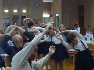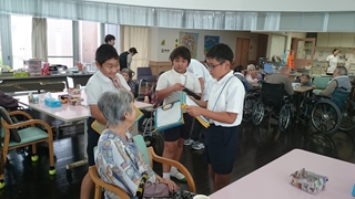 10月10日(水) 2・3校時 4年生が、「てんすい倶楽部」を訪問しました。4年生は、探究で「生き生きとくらせる福祉のまち たまな」の学習をしてきました。これから、車いす体験や高齢者疑似体験をしていきます。これらの学習の一つとして、計画された交流計画です。利用者の方に喜んでもらえるように、また、相手の立場に立って考え行動することができるようになることをねらっています。まさしく玉水小で育てたい力の一つ「共感力」そのものです。写真は、その交流の様子です。