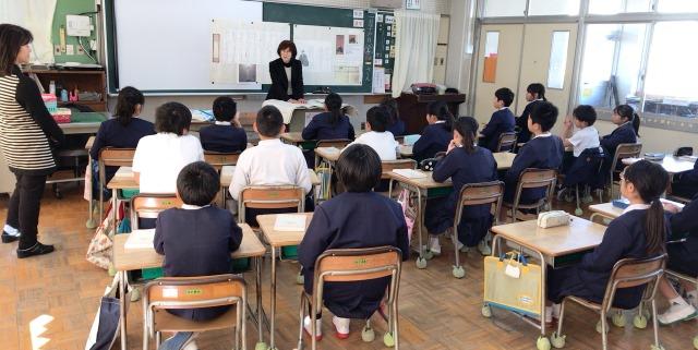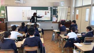 1月18日(金) 玉名市の子供達は、玉名学で茶道を学んでいます。今日は、ゲストティーチャーに作本八重子様をお呼びして、茶道の心得と簡単な歴史を教えていただきました。写真は、その様子です。