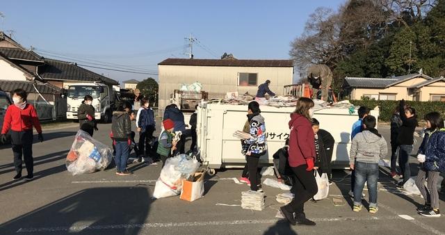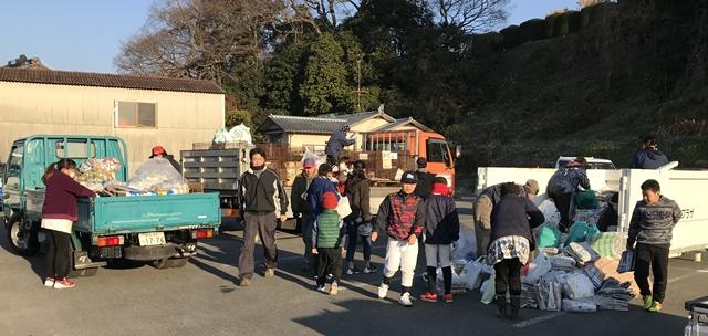 1月19日(土) 今日は、8時からPTA行事の資源回収でした。地区では、7時半からスタートされたそうです。多くの保護者地域の方の協力で、無事に終了することが出来ました。大変ありがとうございました。写真は、回収作業の様子です。