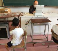 6年生が1年生を、5年生が2年生をお世話しての身体測定