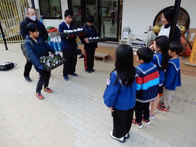 12月17日、環境委員会の6年生3名が近くの保育園に花の苗をプレゼントしました。