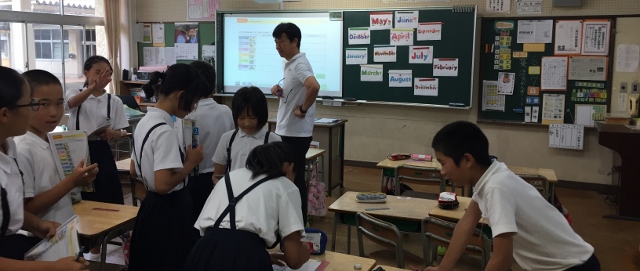 6月7日(水)3時間目6年外国語活動の一コマです。外国の方(ALT)と身振りを交えながら会話をしている姿が新鮮でした。私達の子ども時代からすると信じられないことです。