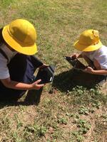 1年生の子供達がタブレットで撮影しているのは、落ち葉や松ぼっくりでした。