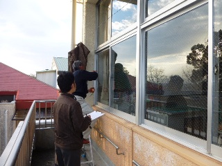 1月16日(火) 昨年の12月からエアコンの工事が始まっています。最初は、校舎周りでしたが、今日から校舎内の工事も始まりました。4月からはエアコンが使えるようになるそうです。写真は、エアコン設置場所の測量と電源の管理する機器?を設置する準備のようです。
