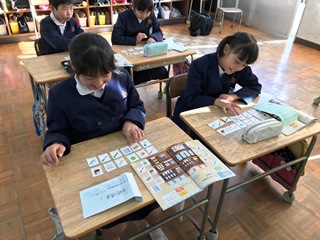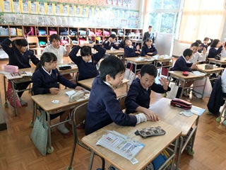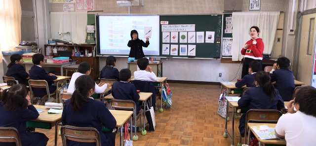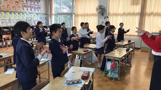 12月13日(木) 昨日、5校時に4年生の外国語活動がありました。玉名教育事務所より松林深外国語活動コーディネーターにおいで頂きご指導を受けました。子供達は、とても意欲的に学習に臨んでいました。身近にある文房具をゲーム形式の活動を取り入れ、繰り返すことで英語に慣れ親しむように工夫されていました。発音は、ALTのモーガン先生にお手本を示していただいています。完璧です。最後はしっかり活動のふり返りが行われていました。