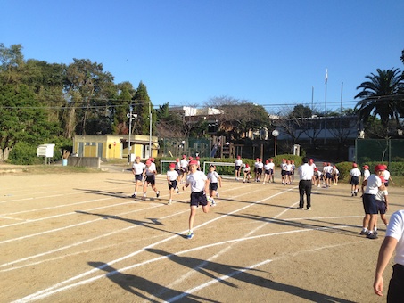 来週の陸上記録会に向けて、5、6年生は毎朝、陸上の練習に励んでいます。