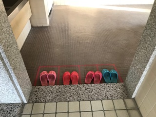1月9日(火) 1時間目の授業を見て回っているとき、トイレのスリッパを撮影しました。何の予告もしていなかったのですが、5つのトイレが見事に並んでいました。紹介します。