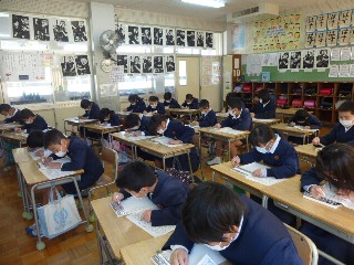 12月13日(水) 2校時玉名学【探究】で「点字を探検しよう」の授業でした。講師に社会福祉協議会から穴井さんをお招きして行いました。玉水小学校の育てたい力の「共感力」につながる授業になります。子どもたちは、無心に活動に取り組み、教室はシーンと静まりかえっていました。