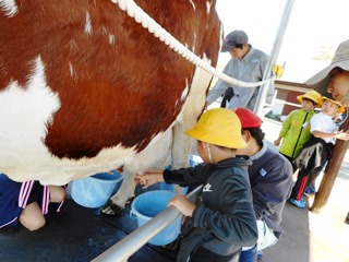 1月6日(火)は、1年生の見学旅行でした。阿蘇ミルク牧場で、動物とのふれあいやアイスクリーム作りの体験等を楽しみました。