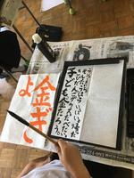 学校での習字は初めてなので、新しい道具をとても嬉しそうに使っていました。