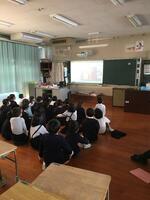 そこで、子供達は教室に戻って、急遽、消火訓練の動画視聴をしました。