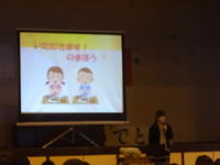 天水町給食センターから栄養士の渡邊先生においでいただいて集会をしました。