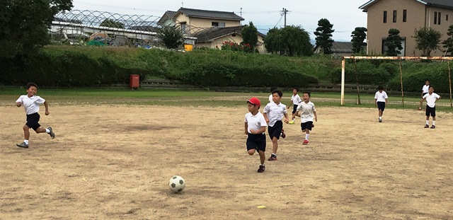 7月13日(金) 今日の朝の様子です。いつものように運動場でサッカーをしている子供達。3つの集団が同時にやっていました。セミを探す1年生。ボランティア活動をしている5年生、もう一枚は、1年生のひまわりの大きさが分かるように虫取り網を持った少年二人に協力してもらった写真です。