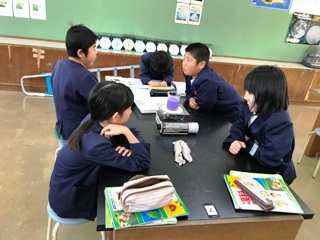 1月25日(木) 2校時授業を参観していたら、理科の実験があっていたので、紹介します。水を温めたときの動きと冷やしたときの動きから仕組みを考える授業でした。ペアでの対話や班での話し合いも組み込まれたり水の色を工夫して見えやすくしたり工夫がしてありました。
