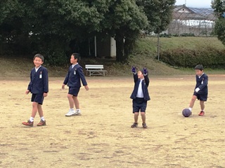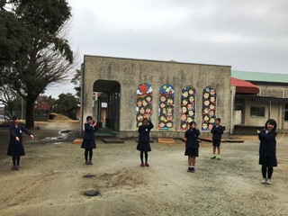 1月22日(月) 昼休みの様子です。教室では、体験入学の準備に自主的に取り組んでいる孤児動がいました。廊下では、色紙に指令を書いて、それをもらった人はその指令に書かれていることに取り組む遊びをしていました。運動場では、6年生の男女が手をつなぎ、鬼ごっこ?をしていました。ほほえましい光景でした。そのほか、サッカーをしている児童とキックベースをしている児童、先日紹介したかえしとびが(縄跳び)できるようになったので、披露してくれた児童です。