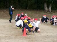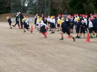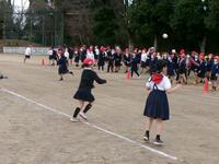 体育委員会が今年度の体力テストの結果を受けて、「投げる力」の課題克服のために、縦割り班活動の中で、「キャッチボールリレー」を企画し、実行してくれました。走る運動と投げる運動が一緒になったもので、1年生から6年生までが玉入れの玉をつなぎながら、夢中で活動しました。