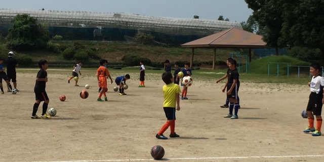 7月26日(水)サッカーとミニバスケットの練習の様子です。どちらも基礎練習をしているところです。じっとしていても汗が出るような暑い中、子ども達は元気にがんばっていました。
