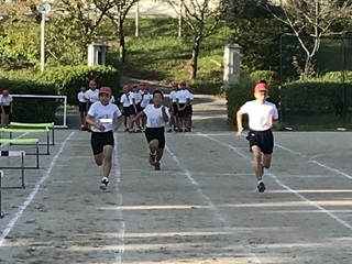 9月27日(木) 陸上記録会練習がありました。みんな一生懸命練習に取り組んでいます。今日は、ハードルそうと短距離走の練習の写真です。少し力強さが出てきたようです。